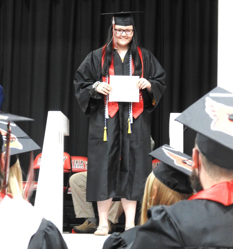 - News Photo by Julie Riddle Graduate Lauren Michele Northrop displays her newly acquired diploma at the 2021 Onaway High School graduation ceremony at the school on Sunday.