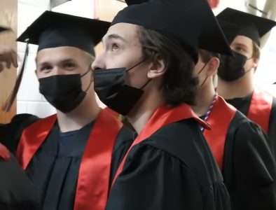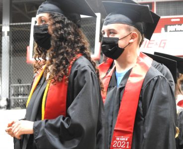 Graduates laughed and straightened their tassels in a school hallway before a staff member ushered them into the gym for the school’s 2021 graduation ceremony, telling the students to enjoy their moment.