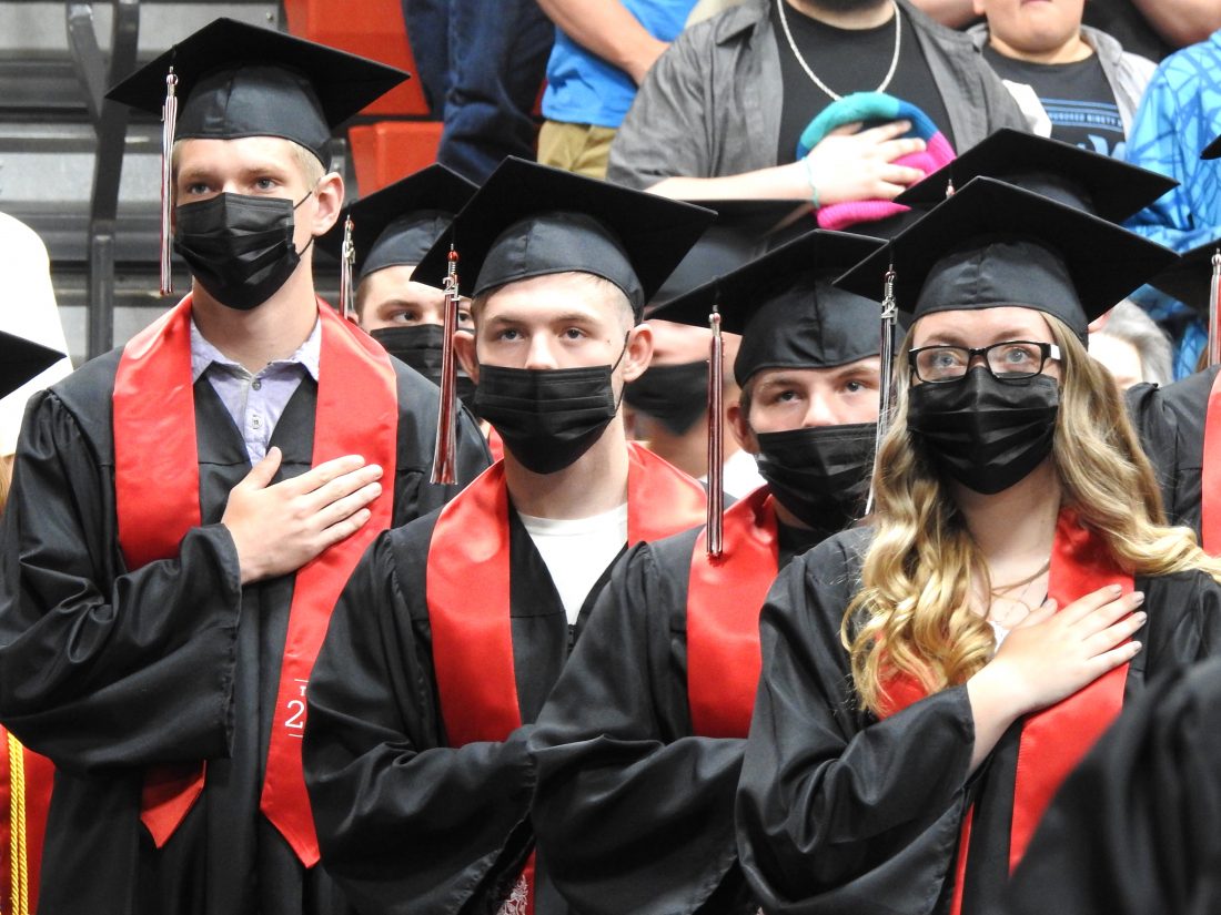 - News Photo by Julie Riddle Seniors recite the Pledge of Allegiance at the 2021 Onaway High School graduation ceremony at the school on Sunday.