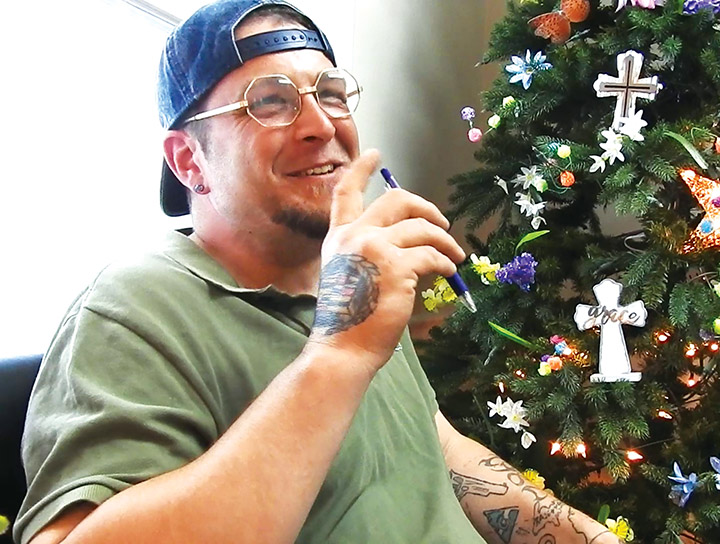 News Photo by Julie Riddle At the Sunrise Mission in Alpena, resident Brian Brown talks last month about the difficulty he’s faced finding low-income housing in Alpena.