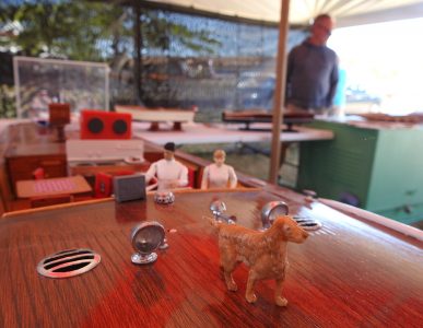 A model boat waits to be admired at the 2021 Presque Isle Harbor Wooden Boat Show on Saturday.