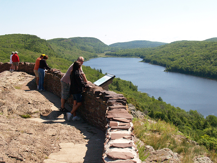 - Visitors enjoy a sunny day at the Lake of the Clouds overlook, the signature attraction at Porcupine Mountains Wilderness State Park in Ontonagon County.