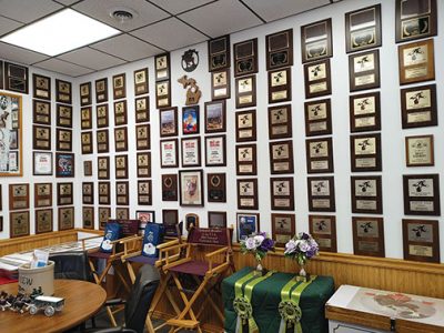 News Photo by James Andersen An office displays dozens of the awards earned by Glenview Clydesdales in more than 20 years of exhibiting. During that time, Glenview’s Clydesdales have been exhibited across the Midwest and in several world shows.