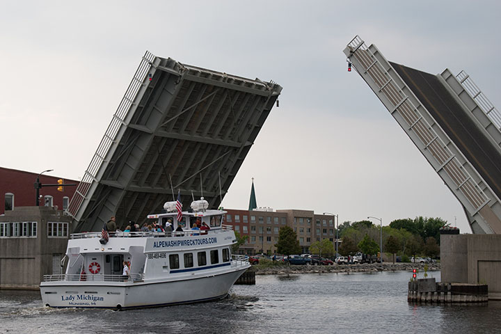 News Photo by Ben Ackley The Lady Michigan glass bottom boat passes through a drawbridge in Alpena. Captain Spencer Cootware says he’s noticed more boats on the water during the cruises.