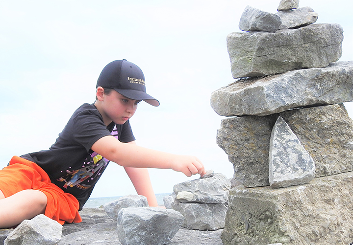 News Photo by Julie Riddle Lucas Behring, 9, of Hillman, builds a cairn at Bay View Park on Wednesday. About a dozen elegant rock stacks have appeared on the park’s rock wall recently. Stirred by Wednesday’s strong winds, waves splashed the young builder on Wednesday as he searched for flat rocks to add to his pile. “This is kind of reminding me of Harry Potter,” Behring said, the small stack in front of him adding a touch of magic to the park’s landscape. “I don’t know why.”