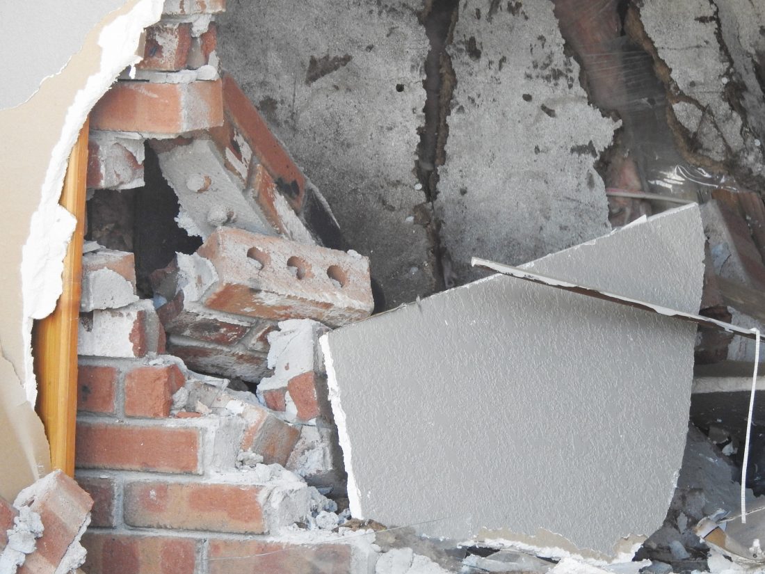 News Photo by Julie Riddle Crumbled brick and torn drywall remain after a car broke through two walls at the Alpena Days Inn on Friday.