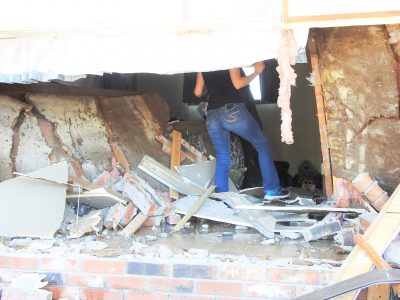 Once a tow worker removed the car, the room — with a giant hole in its wall and the interior coated with bricks, drywall dust, and water from a burst pipe — looked as though someone “threw one heck of a party,” Talbot said.