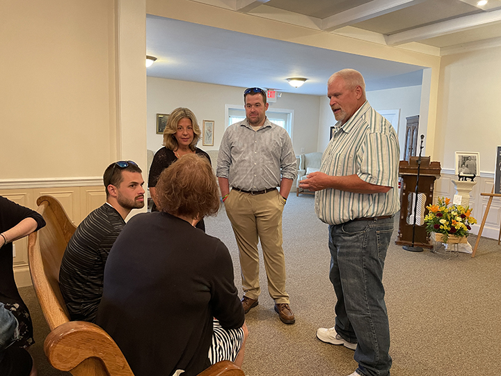 News Photo by Crystal Nelson Eric Mays, pictured right, visits with family and friends Sunday at Beck Funeral Home in Rogers City for his father, Frank Mays, visitation. Frank Mays, who died January 7, was the last living survivor of the Carl D. Bradley shipwreck.