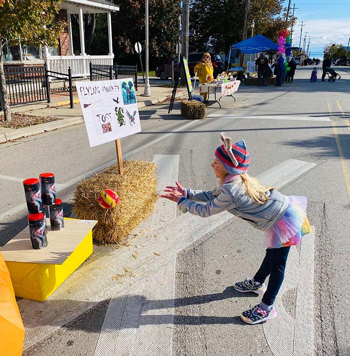 Six-year-old Adeline Plonsky said she was “having a great time,” playing The Flying Monkey game at one of the booths lining Main Street. She was there with her grandmother, Valerie Myrick, who said that it was a beautiful day to spend time with her grandchild.