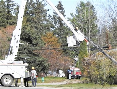 - News Photo by Julie Riddle Alpena Power Company workers responds to downed power lines on U.S.-23 North on Tuesday.
