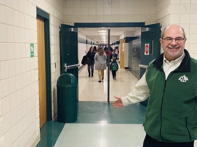 News photo by Barbara Woodham Interim Superintendent Tony Suszek proudly shows the hall in Atlanta.