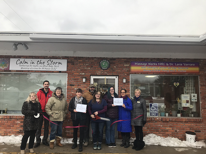 News Photo by Darby Hinkley Alpena Area Chamber of Commerce representatives hosted a grand opening ribbon cutting this morning for Calm in the Storm and Massage Works Natural Health Center, located at 2483 U.S.-23 South in Alpena. Pictured, from left, are Chamber Ambassador Kathy Himes, Chamber President and CEO Adam Poll, Paula Welling and Tatjana Torres of Massage Works Natural Health Center, owners Seth Traylor and Amy Traylor, Katie Klein and Mia Hauff of Calm in the Storm and Massage Works NHC, and Chamber Ambassador Mari Crow.