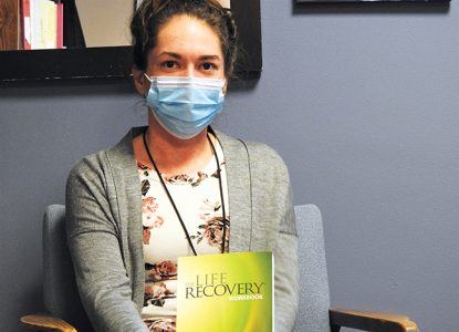 News Photo by Julie Riddle Amanda Espinoza, care manager at the Sunrise Centre in Alpena, holds a Bible study guide at the center on Tuesday.