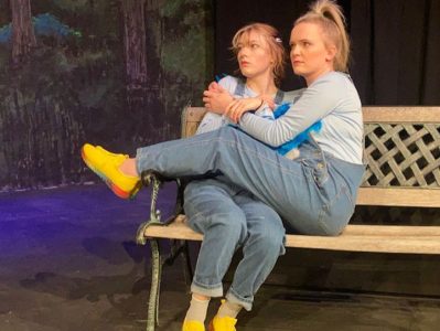 Courtesy Photo by Bronwyn Woolman Two cute little birds, Vie Luther, left, and Hannah Matzke, observe two strange creatures (humans) as they bicker on a blanket in a park in “A Picnic Scene.”