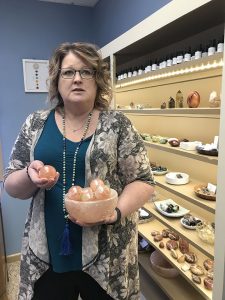 News Photos by Darby Hinkley Illuminate Wellness owner Stacy Kimble holds up a pink Himalayan salt ball, which has many uses, including as a massaging tool or natural deodorant. Pink Himalayan salt is known to remove toxins from the body and mind, Kimble said.