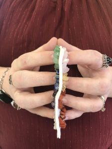 Chakra Goddess Melissa Fournier-Thomas demonstrates how to use a chakra charger, which consists of eight different stones, and can be custom-made.