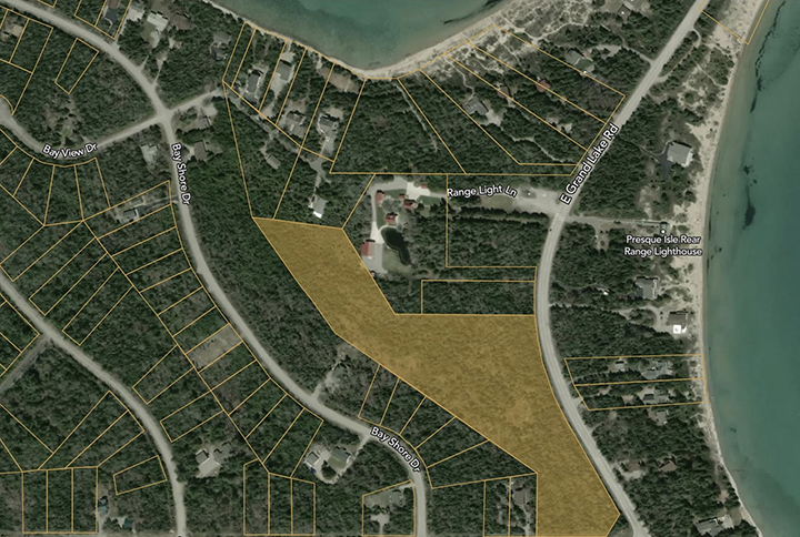 Courtesy Photo An aerial map of Presque Isle Township shows where the proposed condominiums could be constructed. On Tuesday, the Presque Isle Township Planning Commission voted to recommend to the board of trustees that the project move forward. The board of trustees have the final say on the issue, which has drawn the ire of some residents.