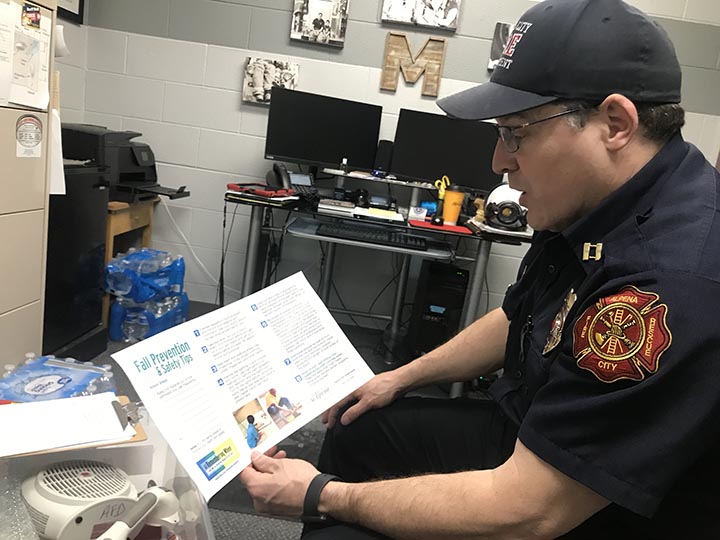“Exercise regularly, take your time getting out of chairs or going down steps, keep stairs and walking areas free of electrical cords, shoes, clothing, improve lighting inside and outside, use non-slip mats in the bathroom, be aware of uneven surfaces at home or anywhere,” he said, reading from a prompt for a program on fire and fall safety called Remembering When. “We really encourage people to get rid of rugs. Rugs are just trip hazards. Try to get rid of them.”