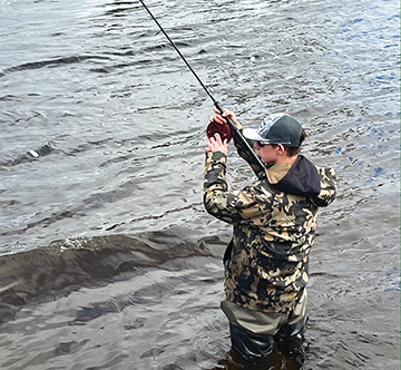 News Photo by Steve Schulwitz Marc Kirchner fishes in the Thunder Bay River despite the cool temperatures in Alpena Friday. Cold air, rain, and some snow are expected to remain in the area for several weeks.