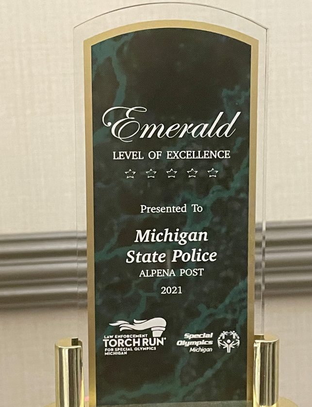 ALPENA — The Michigan State Police-Alpena Post got a nod this week from Law Enforcement Torch Run for Special Olympics and Special Olympics Michigan for its community-mindedness.