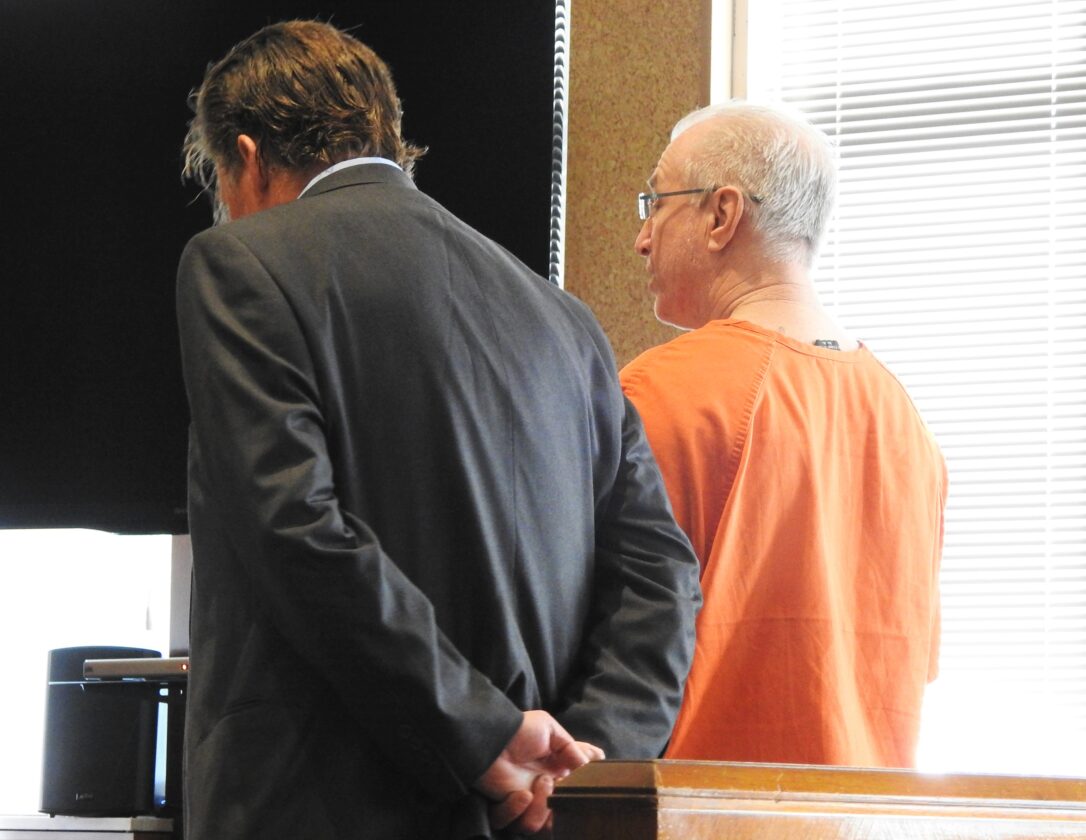 News Photo by Julie Riddle Accompanied by attorney Rick Steiger, Darrin Clemons, right, speaks to Judge Ed Black in Alpena’s 26th Circuit Court on Thursday.
