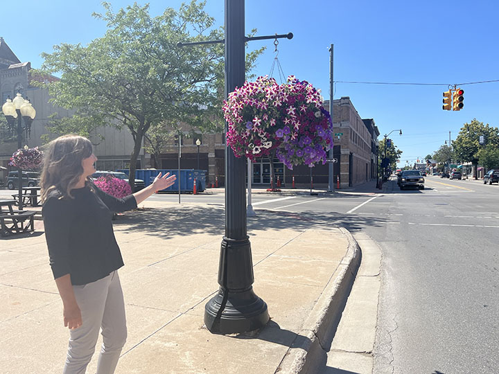 News Photo by Steve Schulwitz Alpena Downtown Development Authority Executive Director Anne Gentry points down Chisholm Street on Thursday to where the DDA district could expand. An updated map of the expanded borders removed some residential properties that would have been subject to a tax increase.