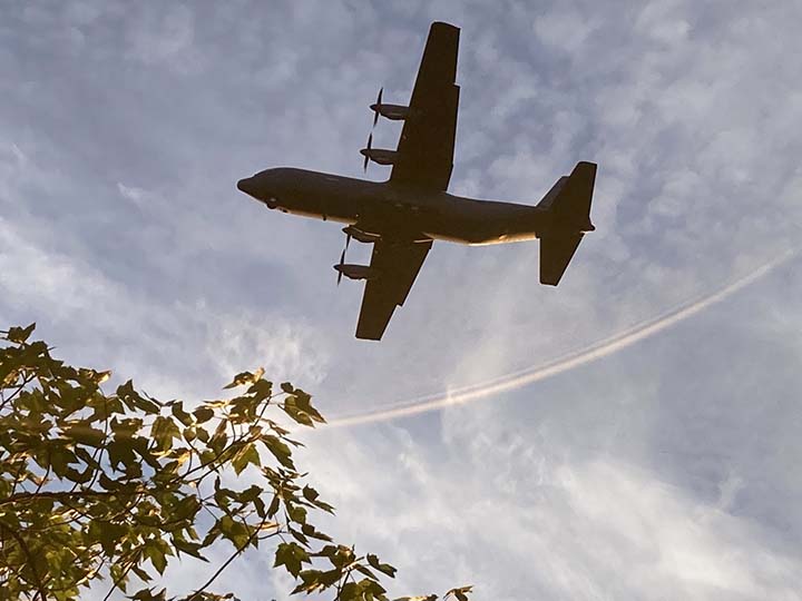 News file photo A cargo plane flies low over Camper’s Cove on as part of the Northern Strike military exercises run out of the Alpena Combat Readiness Training Center.