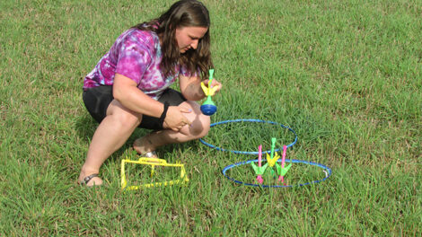 - News Photo by Justin A. Hinkley Mary Brege lays out yard games as she and her family ready the Moltke Maize Maze recently at the family farm northwest of Rogers City.