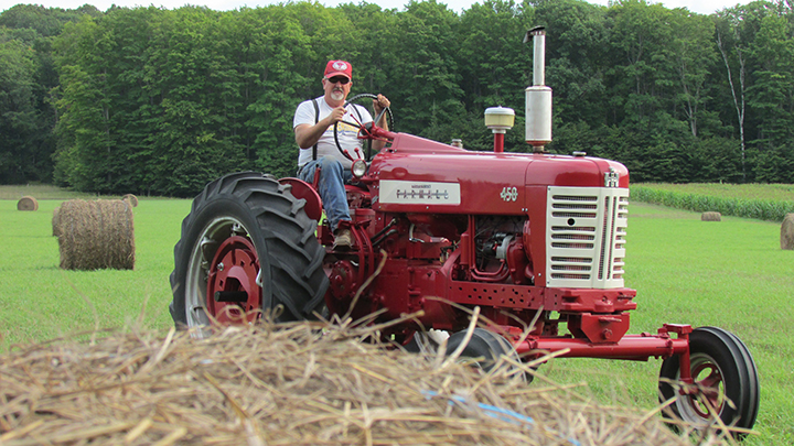 Ralph Tulgestke drives a tractor as he and his family recently prepare the Moltke Maize Maze at the family farm northwest of Rogers City.