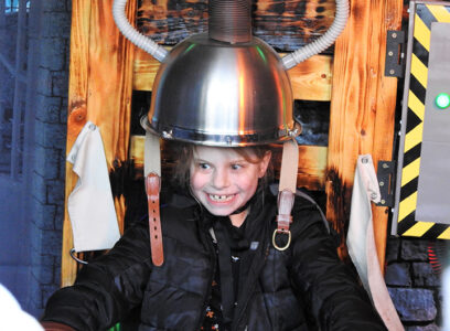 In a garage decked out like a haunted house, children and brave adults took turns sitting gingerly in an “electric chair,” eeking with surprise and delight when the chair vibrated under them.