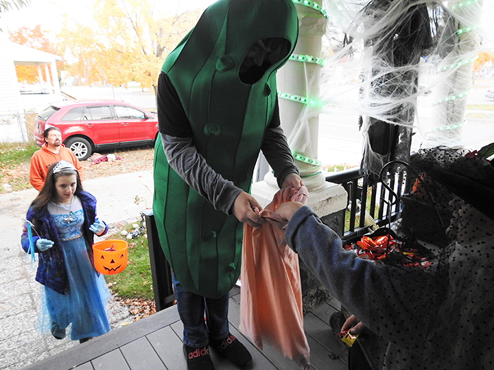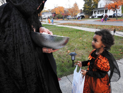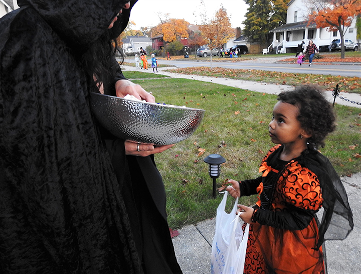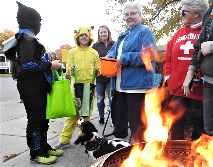 The holiday brings the community together as people see each other face to face, greeting friends and meeting strangers, she said, passing along another smile and a “Happy Halloween!” to a departing cluster of adults and kids.