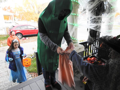 “Rain or snow, we’re out here,” said Kris Lamble, whose driveway at the corner of Washington Avenue and 4th Avenue saw a steady stream of decked-out kiddos on Monday evening.