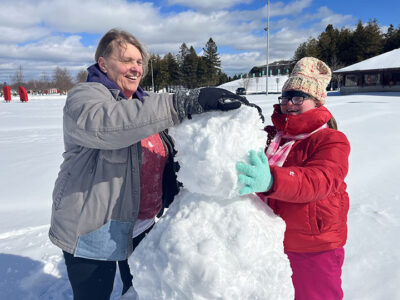 News Photo by Steve Schulwitz Karen Kleve, left, and her daughter Savannah Kleve place the head onto the body of a snowman they built at Mich-e-ke-wis Park in Alpena on Tuesday. A snowstorm on Monday dropped several inches of fresh packing snow and another round of snow is possible Friday.