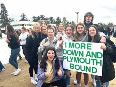 News Photo by Steve Schulwitz Players from the Alpena High School varsity hockey team are greeted by their waiting classmates after school before heading to Gaylord to play Saginaw Heritage in the state quarterfinals. The puck drops at 1 p.m. today and many of the team’s supporters are expected to attend the out-of-town game.