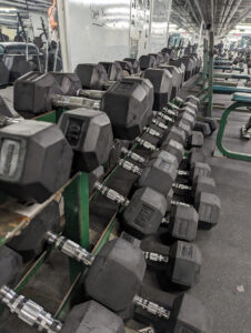 - News Photo by James Andersen Racks of dumbbells are seen in the Alpena High School weight room during a recent morning workout.