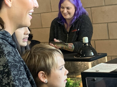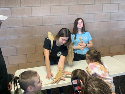 From left to right, Karma’s a Fish pet store employees Taylor SantAmour and Bella Rabeau show off some bearded dragons to some of the attendees of the Northern Michigan Exotic Animal Expo at the APlex on Sunday.