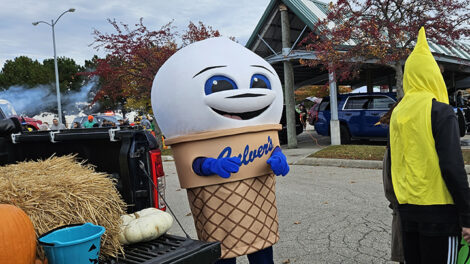- News Photo by Mike Gonzalez The Culver’s mascot, Scoopie, greets visitors to the company’s spot at the Alpena trunk-or-treat event behind Alpena City Hall on Saturday.