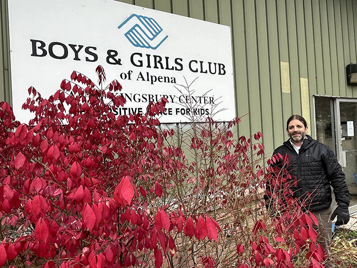 News Photo by Steve Schulwitz Brad Somers, executive director of the Boys and Girls Club of Alpena, poses in front of the club’s former facility on River Street on Wednesday. Alpena County officials are considering amending the deed on that property to allow the club to keep 100% of the proceeds from the sale of the property.