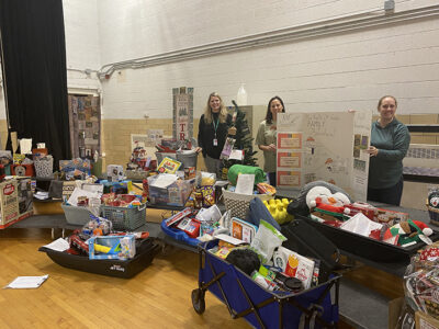 “She starts with the teachers in October,” Barden said of Noble. “The teachers pick their theme, and then they start, for those two months, collecting with parents. They get startup money from us, the PTO, to start their baskets, and then we collect them, set them all up, and wrap them.”