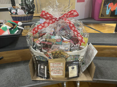 News Photo by Darby Hinkly Classroom raffle baskets, such as the ones seen here, are very popular at the Ella White Christmas Bazaar. The basket themes are selected by teachers, and all proceeds from the raffles go back to the classrooms for use during this school year. Pictured is the Coffee and Chocolate basket from Hope Smith’s classroom.