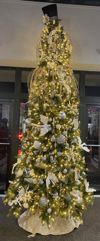 News Photo by Darby Hinkley A Christmas tree stands at the entrance of the Center Building between the Fresh Palate and Thunder Bay Winery in downtown Alpena.