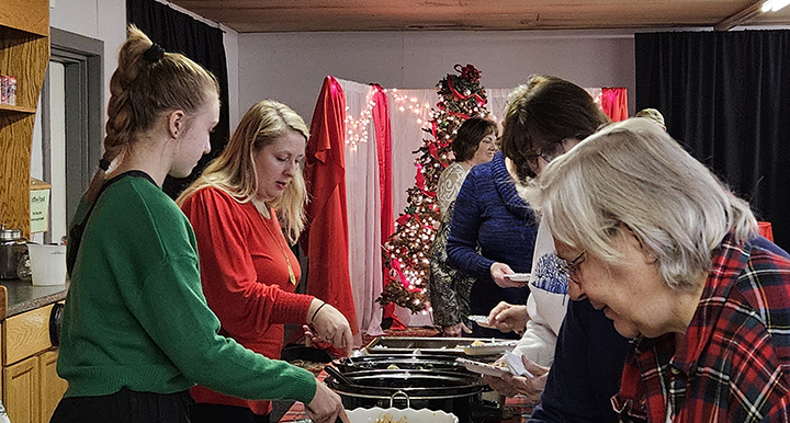 News Photo by Mike Gonzalez Living Hope Church Office Administrator Kyla Avery, second from left, serves food to members of the church on Thursday afternoon.