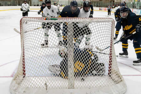 - News Photo by Steve Jakubcin Alpena High School scores one of its seven goals during the Wildcats’ Friday night game against Cadillac at Northern Lights Arena in Alpena. The Wildcats won 7-1.