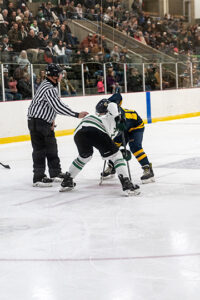 - News Photo by Steve Jakubcin The puck is dropped during the Alpena High School’s Friday night game against Cadillac at Northern Lights Arena in Alpena. The Wildcats won 7-1.