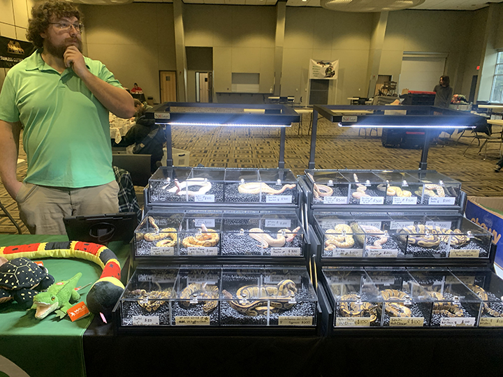 News Photo by Temi Fadayomi Scutes & Scales owner Chris Woodlley shows his assortment of ball pythons at the APlex on Saturday.