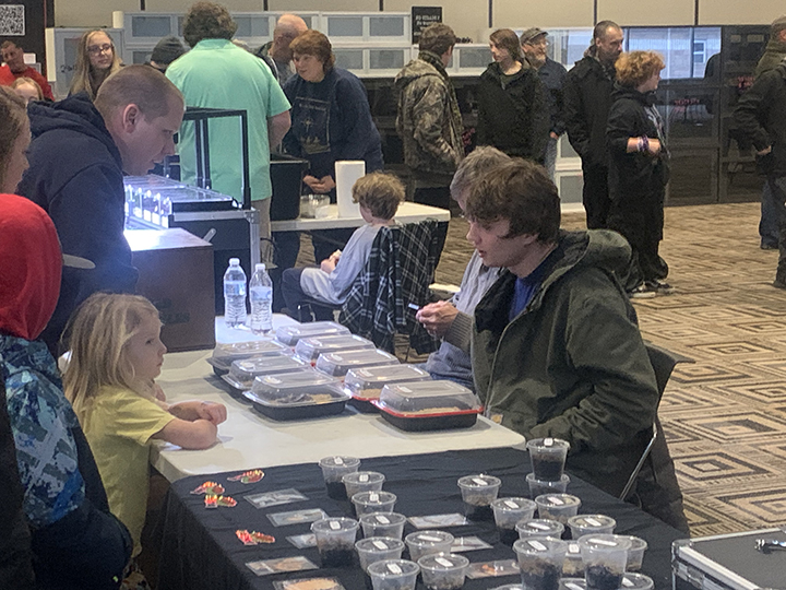News Photo by Temi Fadayomi Austin Whitehead of Stella's Springtails shows attendees of the Northern Michigan Exotic Animal Expo his assortment of Isopods at the APlex on Saturday.