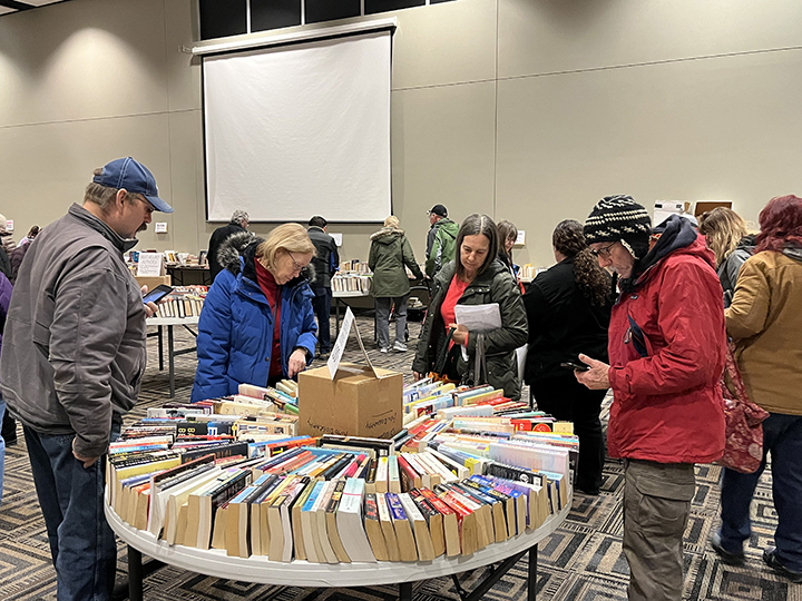 Pictured in this News File Photo, attendees at the 2023 NIE Book Sale peruse one of the tables full of titles.