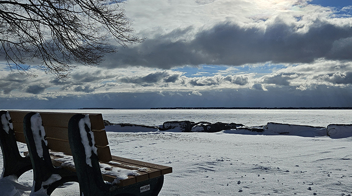 News Photo by Mike Gonzalez Lake Huron is sealed by a layer of ice around its coast on Thursday. As the weather continues to get warm over the week, ice progression on inland lakes and the Great Lakes may slow down or weaken.