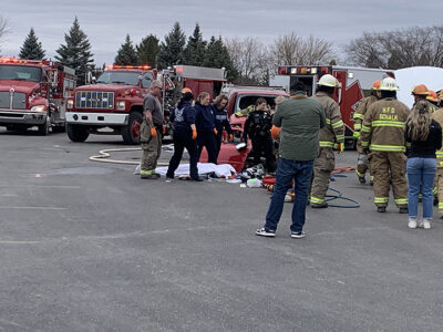 The students watched members of the Hillman Area Fire Department demonstrate prying the SLS members out of the cars. They were able to see Emergency Medical Services workers carry a student out on a stretcher and simulate performing CPR on a student who was acting unresponsive and eventually “pronounced dead” on the scene.
