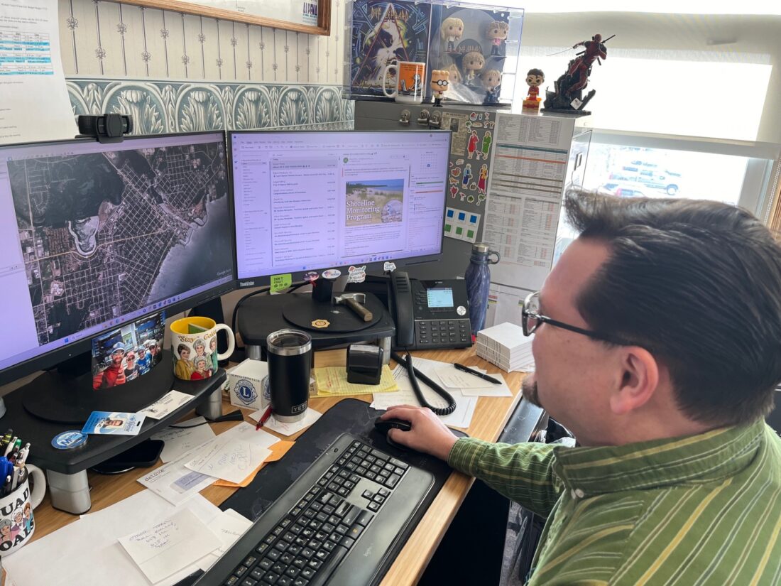 News Photo by Steve Schulwitz Alpena Engineer Steve Shultz looks at a map of Alpena while at his desk on Wednesday. Shultz said the current lead survey in Alpena is ongoing and so far, only nine of about 3,000 homes inspected had lead in their system.